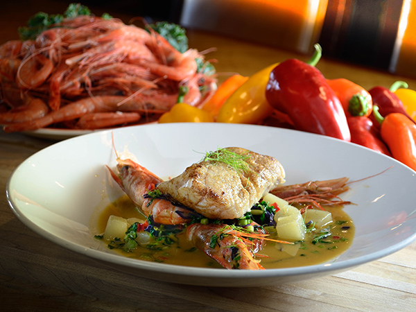 Seeteufel & Garnelen an Pasta und Gemüse