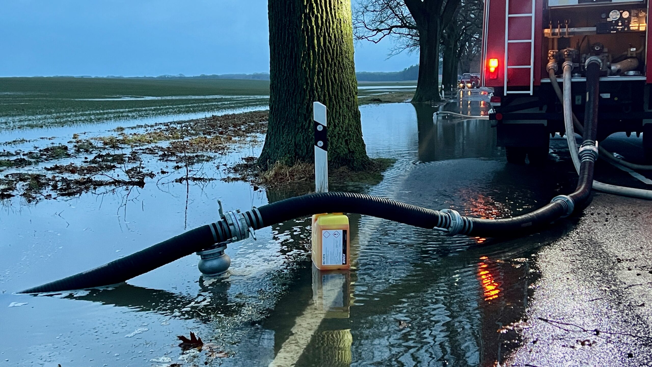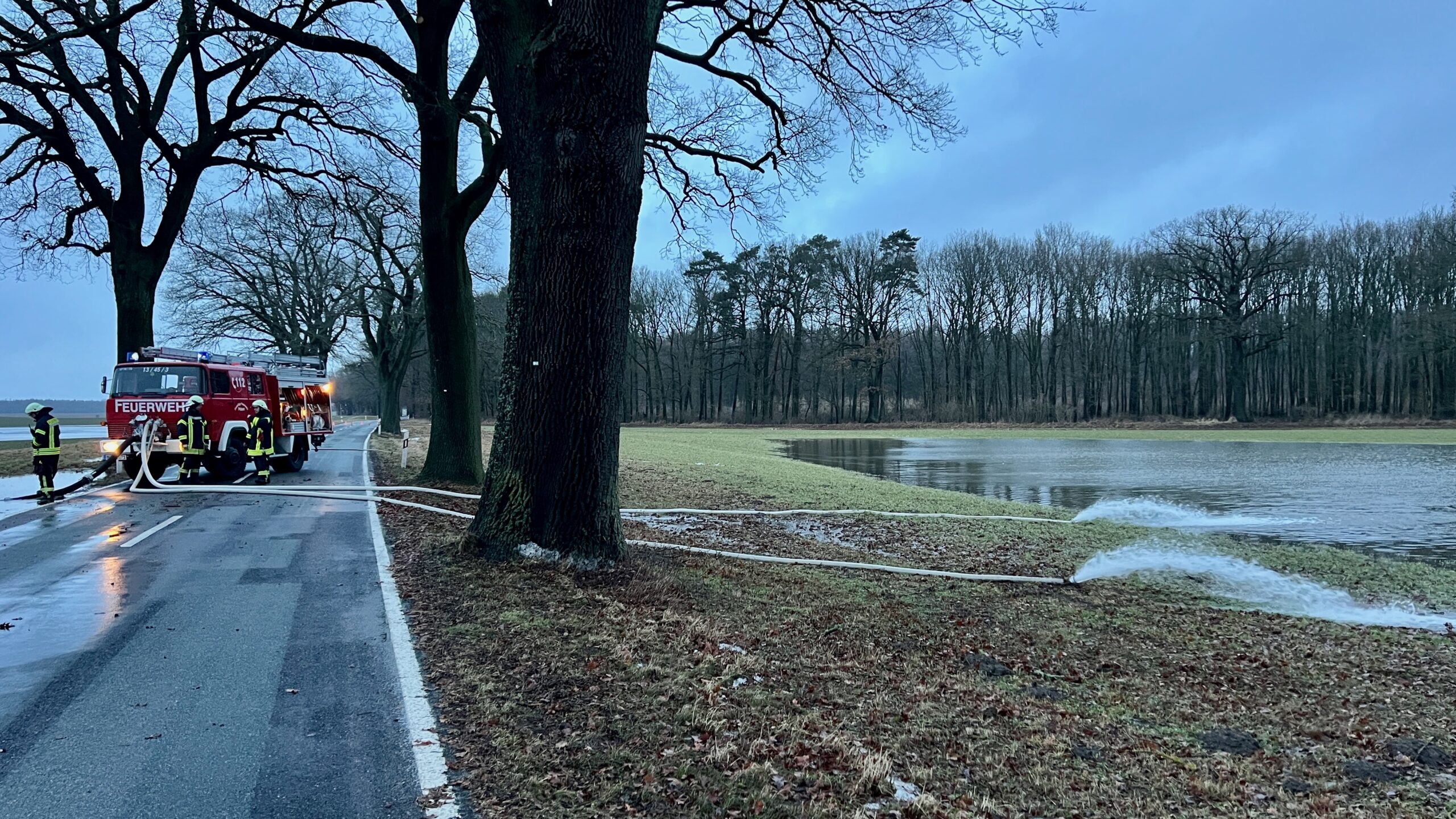 Die Polizei warnt eindringlich, die überfluteten Straßen, die manchmal an unübersichtlichen Stellen auftreten, zu unterschätzen. Gerade jetzt bei Dunkelheit kann es bei unangepasster Geschwindigkeit und Aquaplaning schnell zu sehr gefährlichen Situationen kommen.