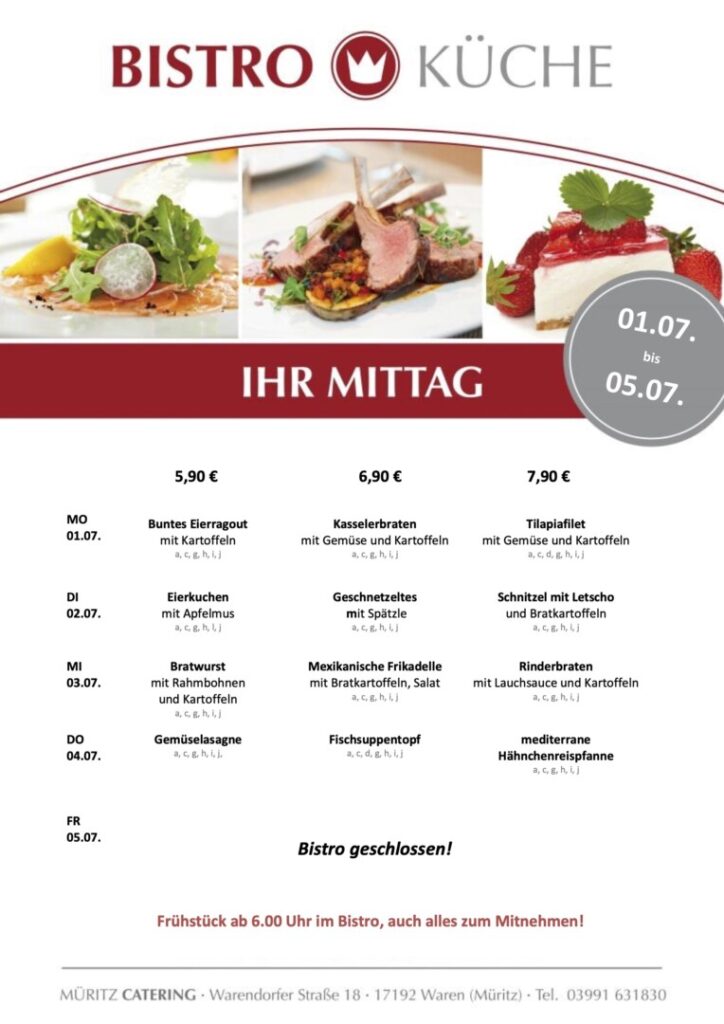 WeiterlesenNeuer Monat, neue Woche, neuer Speiseplan für die Bistro-Küche von Müritz Catering im Warener ÜAZ: