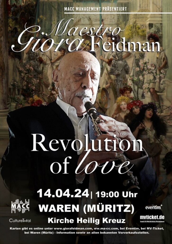 Ein besonderes musikalisches Erlebnis erwartet die Warener sowie die Gäste der Stadt am morgigen Sonntag, 14. April. Im Rahmen seiner Tournee „Revolution of Love“ gastiert Giora Feidmann zu einem Konzert…