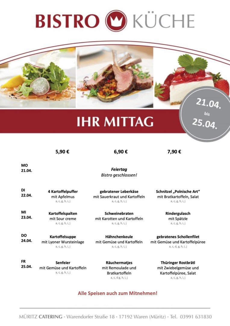 Nach Ostern können die Gäste der Bistro-Küche von Müritz Catering im Warener ÜAZ zwischen Kartoffelpuffer, gebratenem Leberkäse und Schnitzel „Polnischer Art“ wählen.