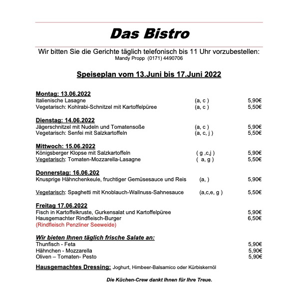 Neue Woche, neuer Speiseplan: Los geht’s in „Das Bistro“ am Warener Amtsbrink heute mit Lasagne sowie Kohlrabi-Schnitzel.