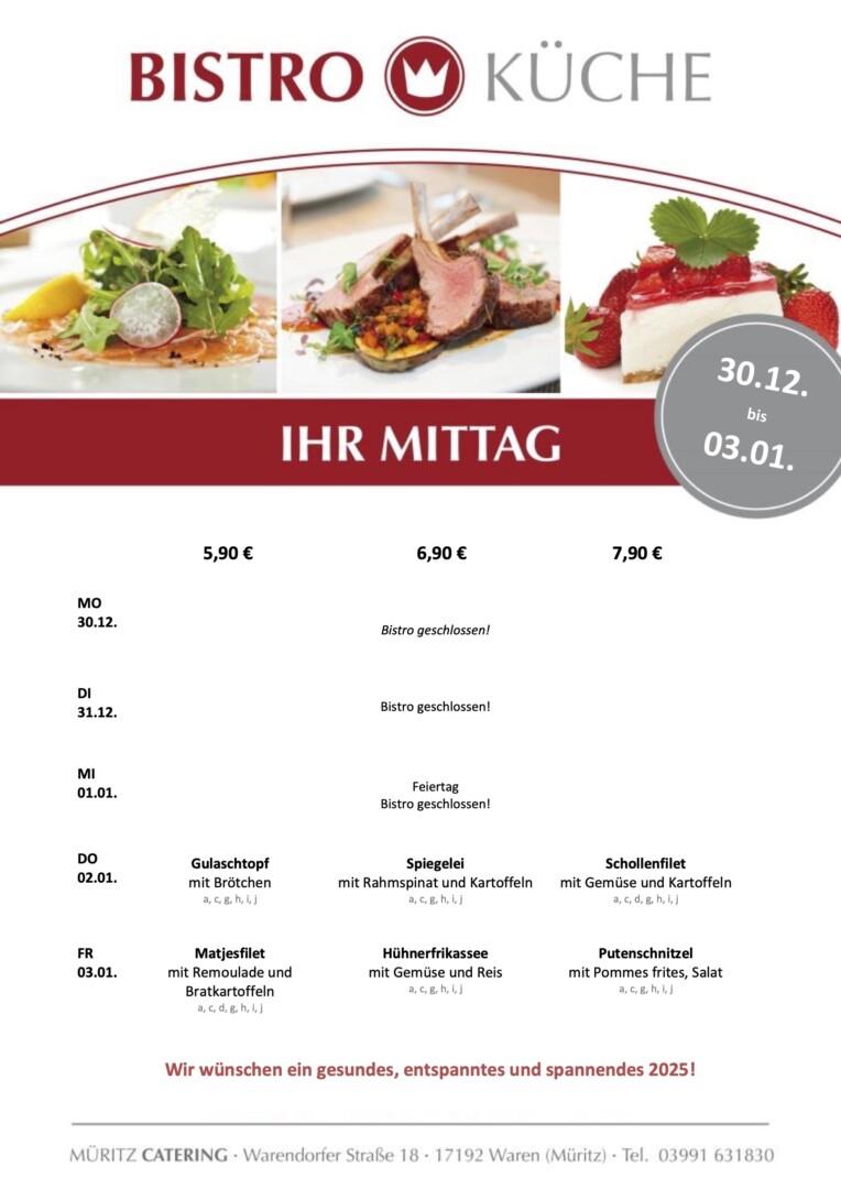 ᵂᴱᴿᴮᵁᴺᴳ | Der aktuelle Speiseplan der Bistro-Küche in Waren