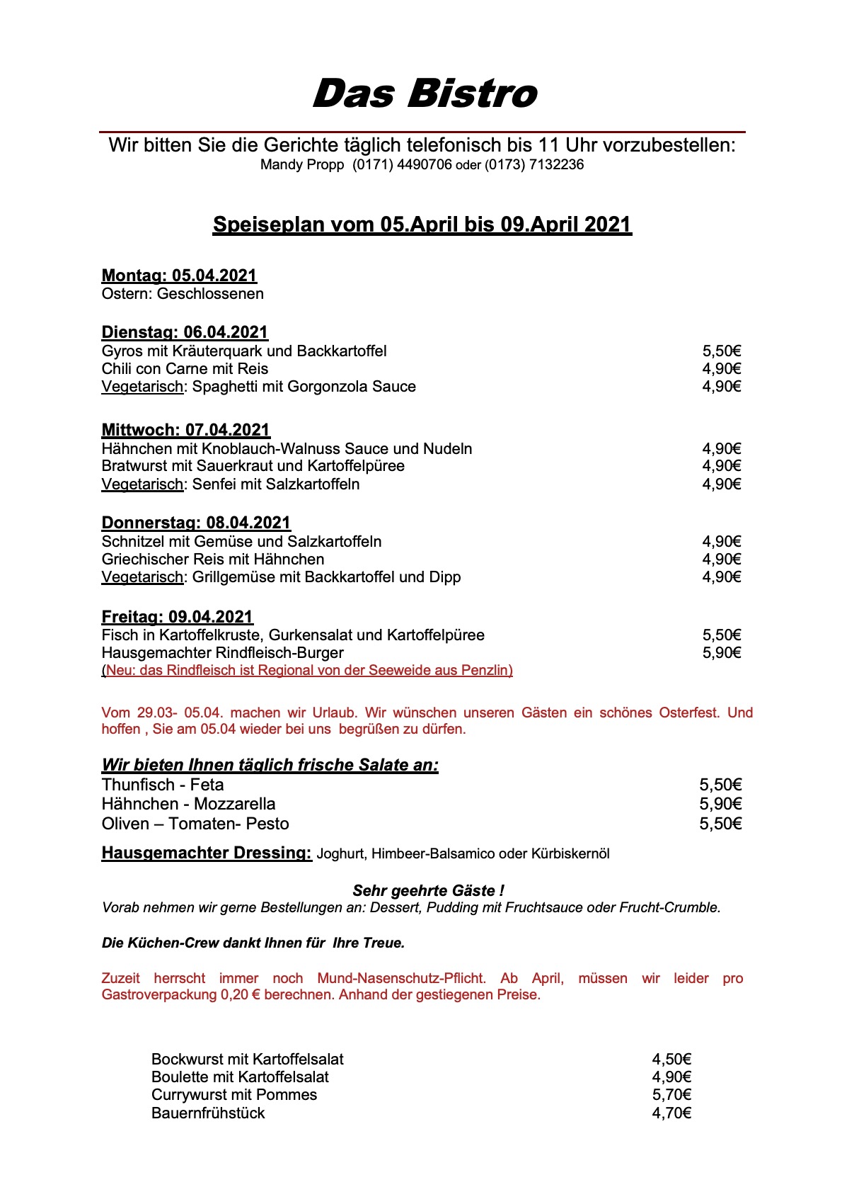 Die verkürzte Woche startet in „Das Bistro“ am Warener Amtsbrink mit Gyros, Chili con Carne sowie Spaghetti Gorgonzola.