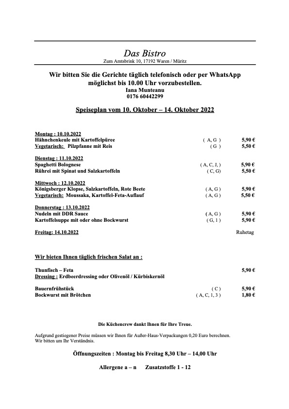 Hähnchenkeule mit Kartoffelpüree sowie Pilzpfanne mit Reis stehen heute auf dem Speiseplan von „Das Bistro“ am Warener Amtsbrink.