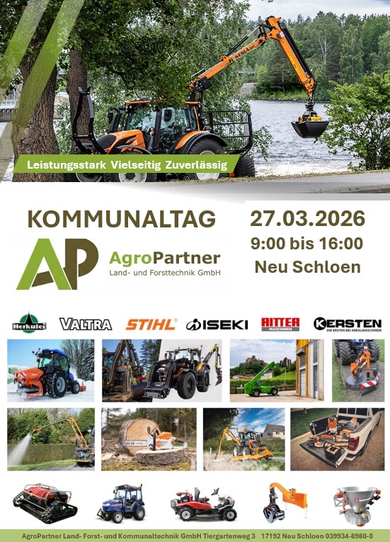Am 27. März von 9 bis 16 Uhr laden wir herzlich zu unserem Kommunaltag bei AgroPartner Land- und Forsttechnik ein.
