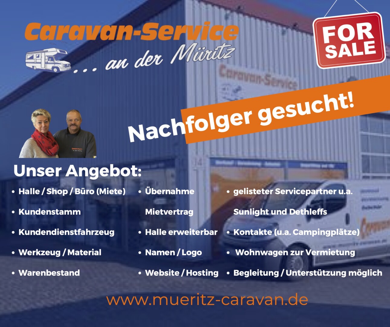 Nach einem abwechslungsreichen Berufsleben und erfolgreicher Gründung und Etablierung ihres Caravan Service an der Müritz möchte das Paar sich jedoch in die wohlverdiente Rente verabschieden und zukünftig ihre Zeit mit Enkelkindern und Reisen im Wohnmobil verbringen.