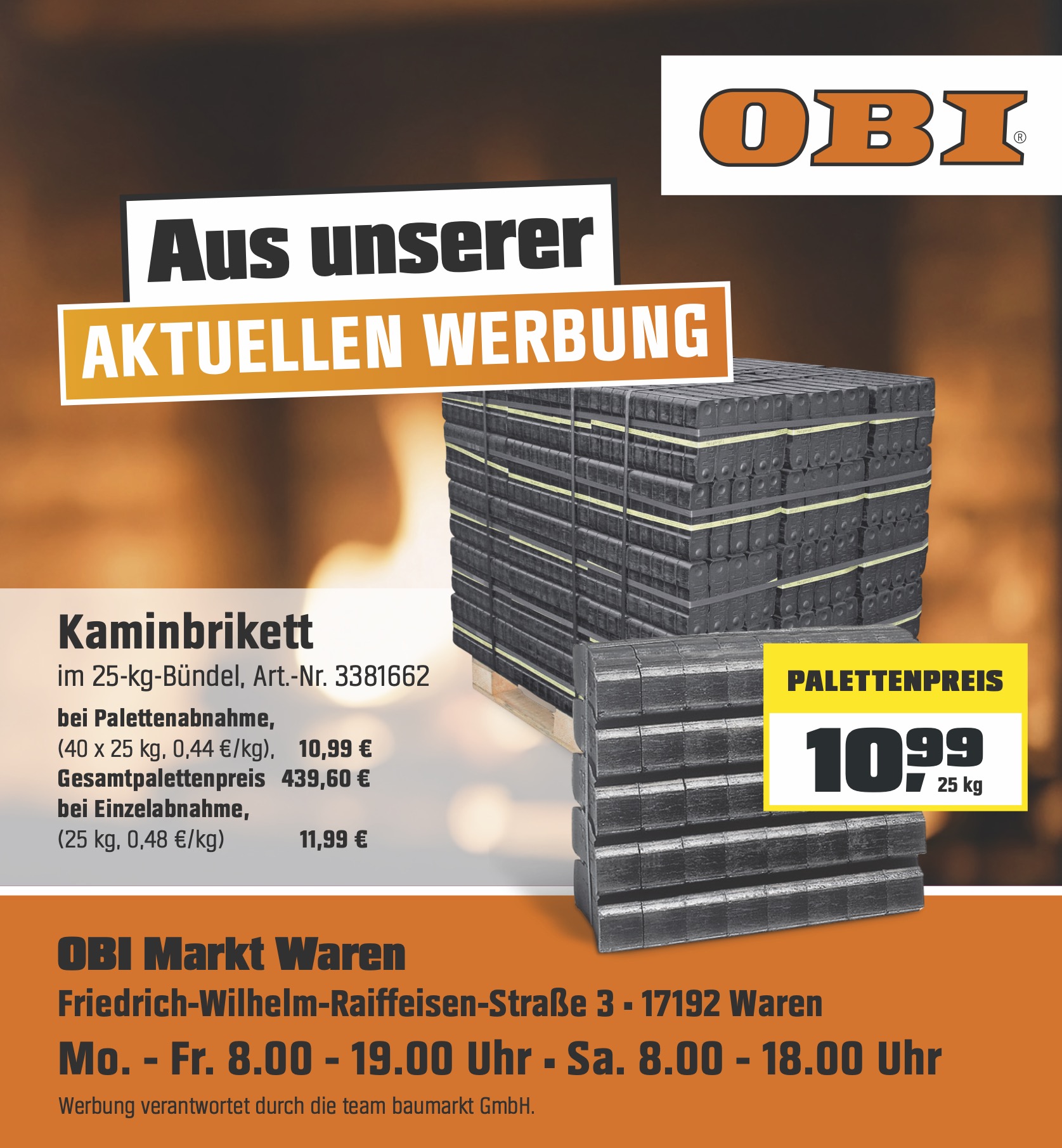 Der Warener OBI-Markt hat für alle Kaminfreunde derzeit ein besonderes Angebot: