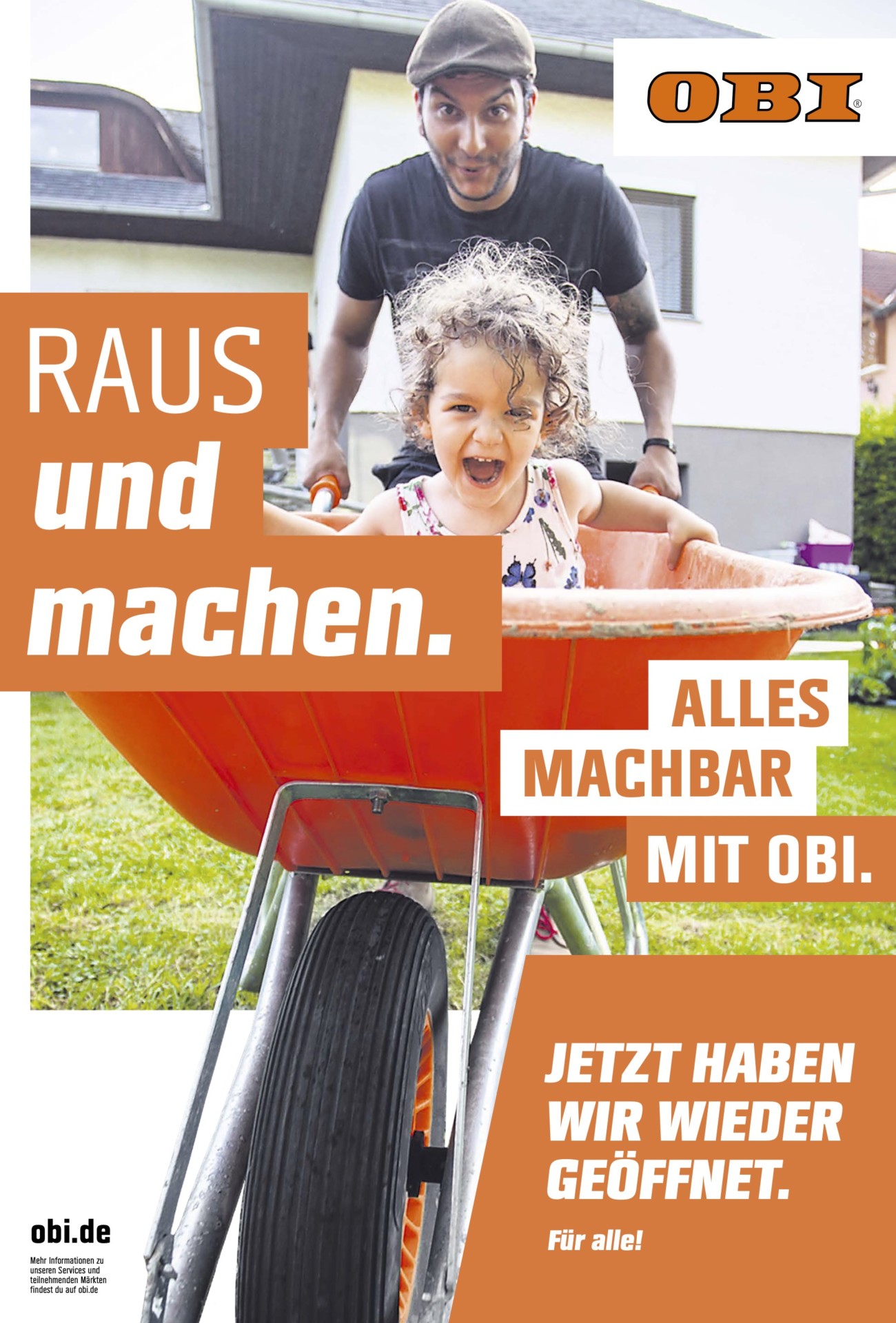 Die Mitarbeiter des OBI Waren freuen sich zu den normalen Öffnungszeiten auf ihre Kunden, und zwar: