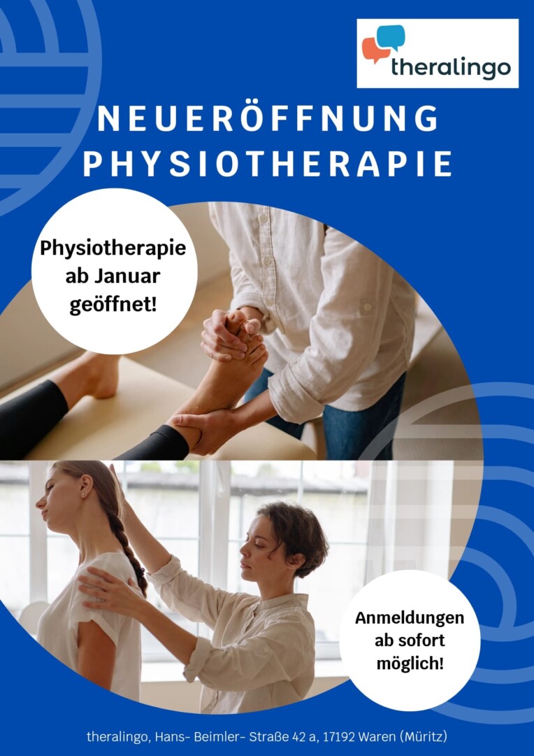 Seit über 13 Jahren bietet die Praxis theralingo um die rührige Chefin Inga Bauch in Waren professionelle Unterstützung im Bereich Logopädie und Ergotherapie. Mit einem engagierten Team und einem klaren Fokus auf die individuellen Bedürfnisse der Patienten hat sich die Praxis als verlässlicher Partner für Gesundheit und Therapie etabliert. Ab Januar 2025 erweitert die Praxis ihr Leistungsspektrum um Physiotherapie, um ihren ganzheitlichen Ansatz weiter auszubauen. Also ganzheitliche Versorgung unter einem Dach.