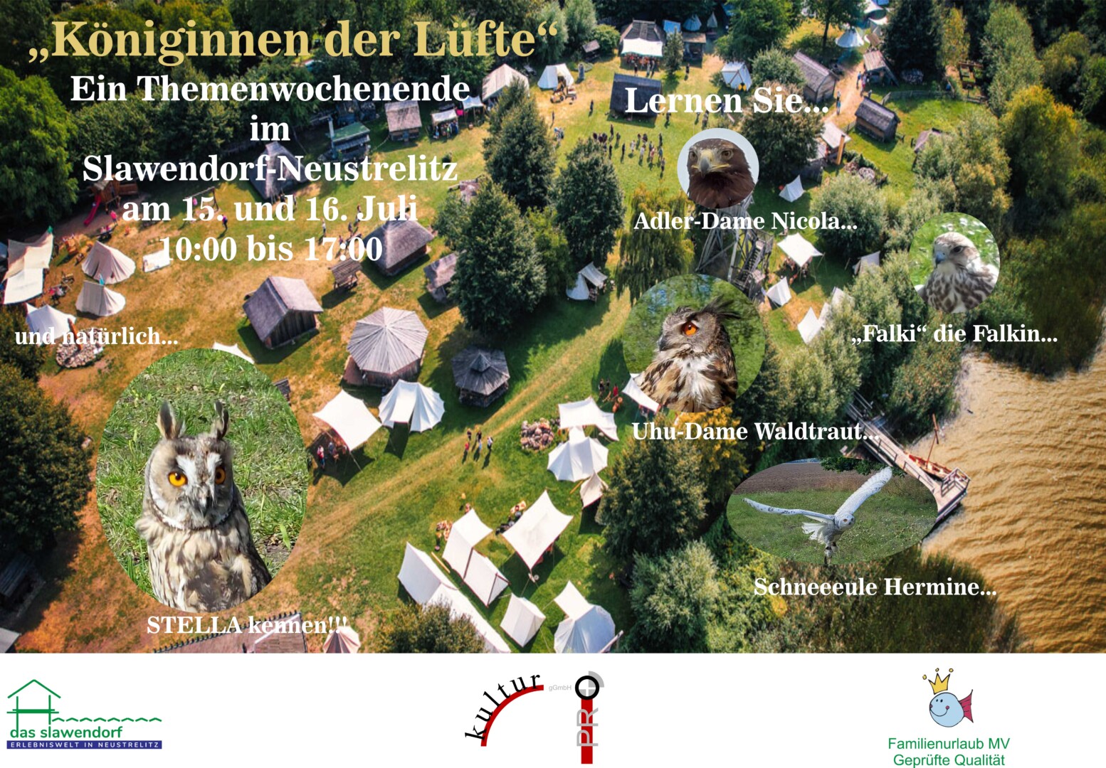 In dieser Woche ist im Neustrelitzer Slawendorf die 11.111.Besucherin begrüßt worden – Frau Nagel aus Köln. Sie macht mit ihrem Ehemann sowie den beiden Kindern Leonie und Malte Urlaub an der Mecklenburgischen Seenplatte und nutzte das sonnige Wetter zum Besuch der Freizeitanlage am Zierker See. Die Organisatoren freuen sich, dass noch vor Beginn der Schulferien die ersten 10.000 Besucher erreicht wurden. 30.000 Besucher hat man sich in dieser Saison zum Ziel gesetzt.  Die zahlreichen Mitmach- und Informationsangebote für  Besucher aller Altersgruppen seien bislang gut angenommen worden und sollen dazu beitragen, dieses Ziel zu erreichen. Wie die Greifvogelschau an diesem Wochenende, die unter dem Titel „Königinnen der Lüfte“ steht. Heute und morgen sind Vorführungen für alle Altersgruppen geplant.