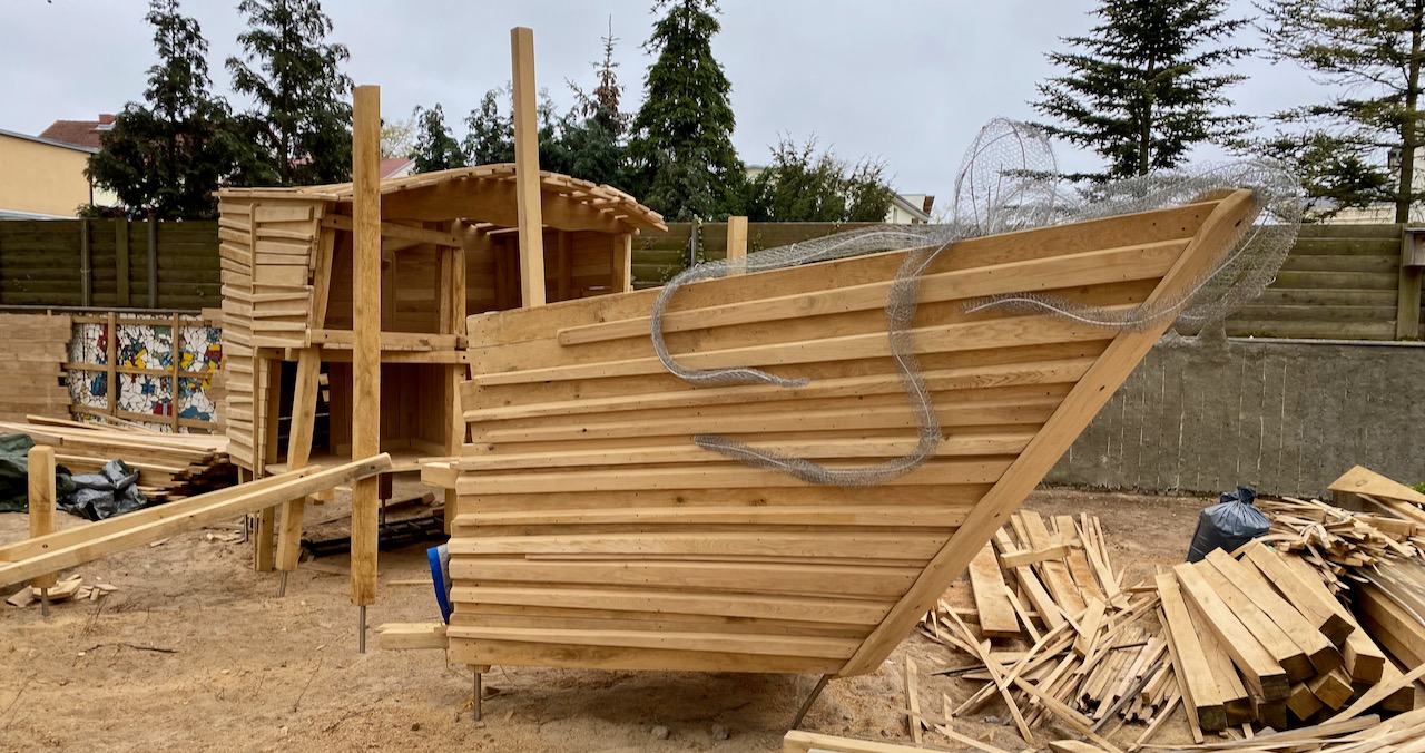 Von wegen, auf den Schulhöfen ist derzeit nur wenig los: Auf dem Schulhof der Warener Arche-Schule kreischen Sägen, wird gehämmert und gemauert: Die Schüler bekommen ein neues, richtig cooles Spielgerät. Möglich ist das durch die Crowdfunding-Plattform „99 Funken“ der Müritz-Sparkasse. Dort wurde für das besondere Klettergerüst gesammelt. Und zwar sehr erfolgreich. Inzwischen sind die Firmen vor Ort, und es ist bereits zu erkennen, wo die Reise hingeht – ein neues Spielschiff wird gebaut.