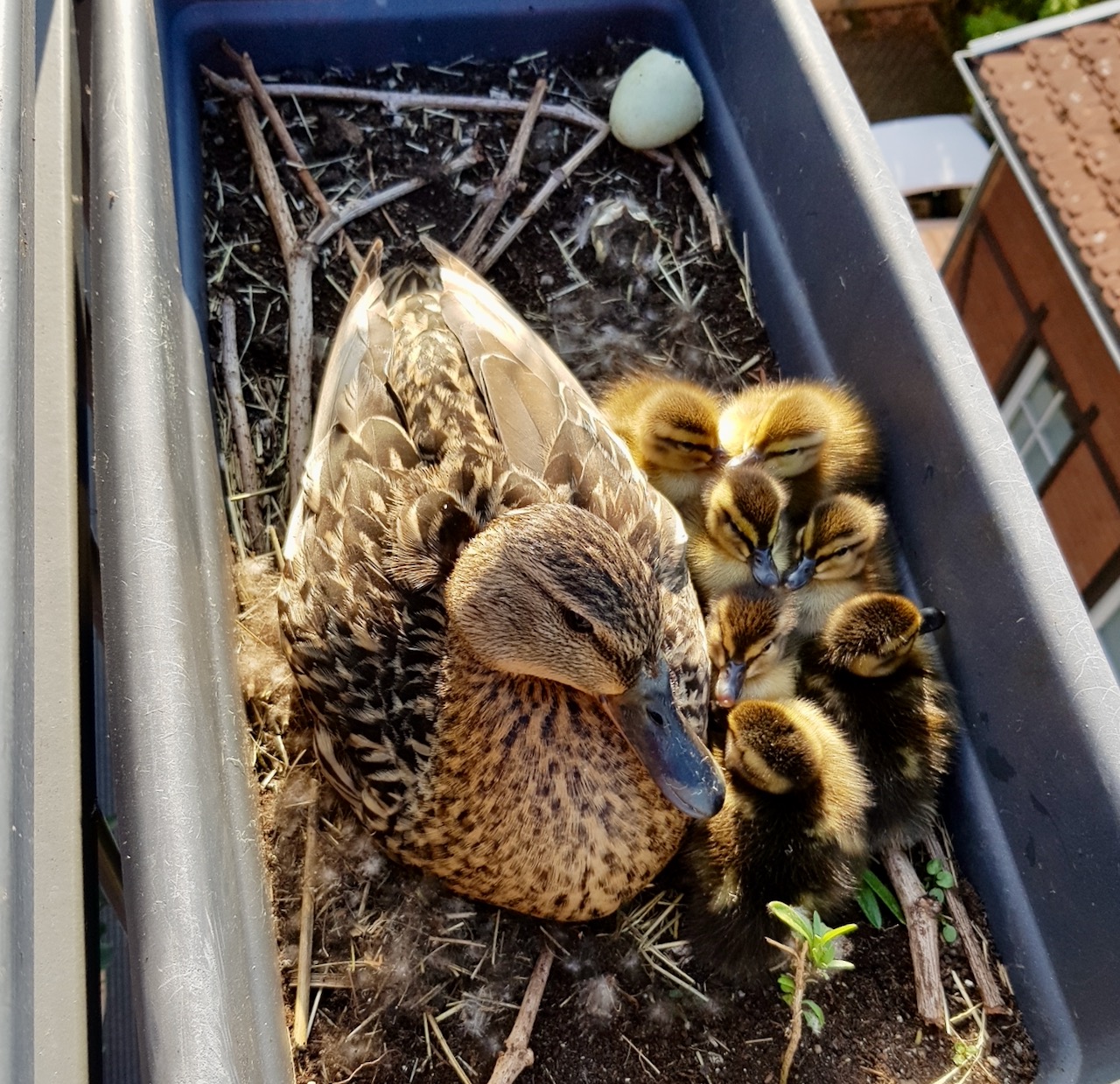 „Zwei Wochen lang hat die Ernte fast täglich ein Ei in den Balkonkasten gelegt. Wir haben uns dann von Experten Tipps geholt, die empfohlen haben, dass wir der Ente den Raum zum Brüten lassen sollen. Aus Sicherheitsgründen haben wir den Balkonkasten aber von der Brüstung ins Innere des Balkons geholt“, erzählt Tina Wallner. Neun Eier waren es insgesamt und bei der Warener Familie wuchs neben der Spannung auch die Angst, ob wohl alles gut geht, schließlich leben sie im vierten Stock und ein Sturz in den Innenhof kann bei kleinen Enten gut gehen, aber auch gefährlich werden.