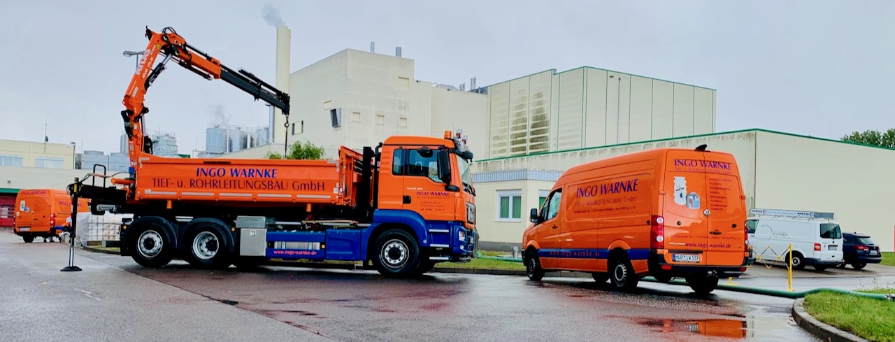 Neben dem Tief- und Rohrleitungsbau sind die “Warnke-Männer” – darunter mit Sohn Martin der zweite Geschäftsführer – auch im Straßenbau tätig, bauen Kleinkläranlagen und Pumpwerke, sind in ganz Deutschland unterwegs, um alte Böden aus Discountern zu fräsen und haben sich in den vergangenen Jahren zudem einen Namen bei der Schachtsanierung für die Industrie gemacht.