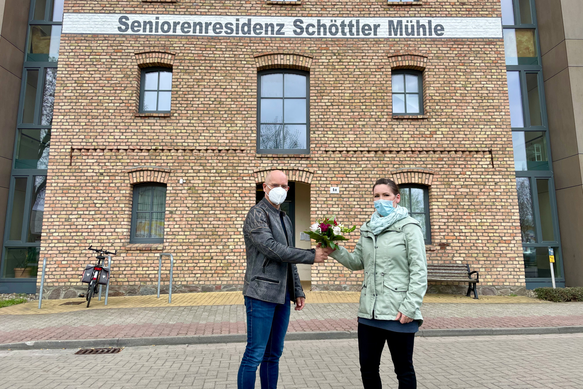 Gute Mitarbeiter sind heutzutage Mangelware – auch an der Müritz und ganz besonders in der Pflege. Da müssen sich Arbeitgeber inzwischen einiges einfallen lassen, um neue Mitarbeiter für sich und ihr Unternehmen zu gewinnen. Dabei geht es nicht nur um eine anständige Bezahlung, sondern auch um die Rahmenbedingungen. Detlef Böser, einer der Chefs der Böser & Briehn Pflege GmbH, kennt die Bedürfnisse seiner rund 100 Mitarbeiter und bietet ihnen individuelle Arbeitszeitmodelle an. Und so ist es kein Wunder, dass Mitarbeiterinnen, die beispielsweise ein Baby bekommen haben, nach der Elternzeit sehr gerne wieder zur Pflege GmbH zurückkehren. Eine von ihnen ist Sandra Koseda. Sie wurde in dieser Woche nach der Elternzeit von Detlef Böser wieder offiziell im Team der „Schöttler Mühle“ begrüßt.