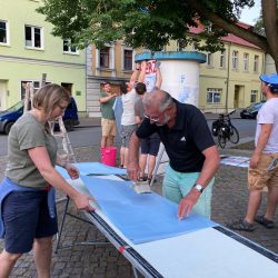 „Bei der Plakataktion machen jetzt 50 Bürger der Stadt mit – ganz normale Bürger. Aber es können auch noch viel mehr werden, denn diese Aktion soll mit dem heutigen Beginn nicht beendet sein. Wir wollen mehr Menschen aus unser Stadt zeigen“, so Karsten Thorun als Pressesprecher der Stadtverwaltung. Er betont allerdings, dass es sich um keine Aktion der Verwaltung handelt, sondern dass es die „ganz normalen Bürger von nebenan“ sind, die hier mitgewirkt, ihre Ideen und vor allem ganz viel Freizeit eingebracht haben. Rund 250 Stunden haben die Röbel bislang in die Aktion investiert und ein Ende ist noch nicht in Sicht.