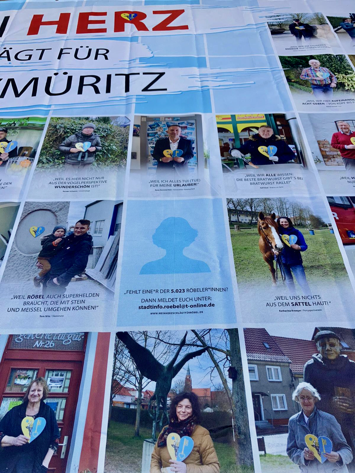 Und das ist ihnen perfekt gelungen. Ob Video, Plakate, ob Bilder von den Bürgern mit kurzen Texten, ob Homepage oder Aufkleber – „Unser Herz schlägt für Röbel/Müritz“ bringt genau das ‚rüber, was man ‚rüber bringen wollte: Verbundenheit zur Stadt, Offenheit und Herzlichkeit.