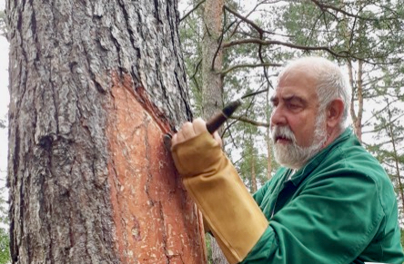 Am Fledermauslehrpfad des Naturparks Nossentiner/Schwinzer Heide in Bossow kann an jedem Mittwoch im Juli, ab 10 Uhr nachvollzogen werden, wie mühevoll es ist, den Saft der Kiefern zu gewinnen. Johannes Herbst ist Spezialist für die Kiefernrohbalsamgewinnung und teilt seine langjährigen Berufserfahrungen auf diesem Gebiet gern mit. Vom Röten der Bäume bis zum ersten Entleeren der Auffanggefäße vergehen Monate. Diesen Prozess können interessierte Besucher in Kurzfassung beim Anreißen einer weiteren Harzrinne verfolgen.