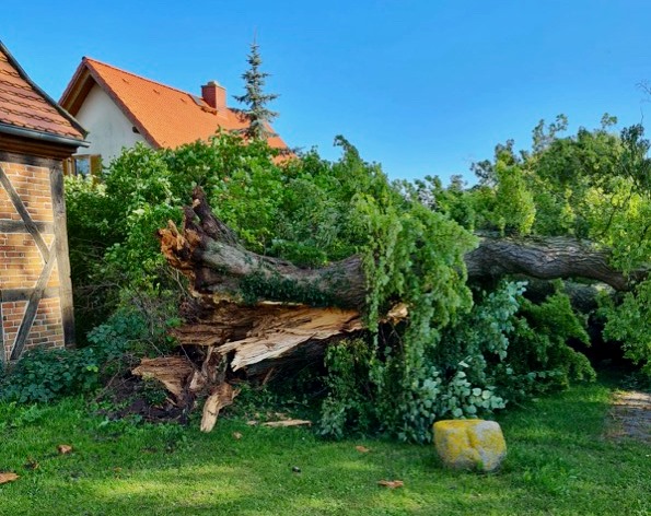 An der Kirche in Vielist ist heute Nachmittag ein dicker, alter Baum umgefallen. Glücklicherweise befanden sich zu diesem Zeitpunkt keine Personen in der Nähe. Die Feuerwehr kümmerte sich, denn der Baum blockierte eine Straße.