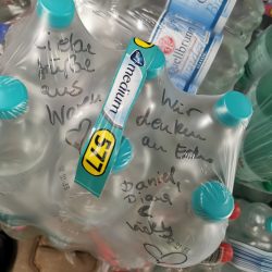 Nach wie vor: Bitte keine Kleidung! Haltbare Lebensmittel, Getränke, Hygieneartikel, Tiernahrung, Werkzeuge, Gummistiefel und vor allem Baby-Bedarf wie Milchpulver und Co.