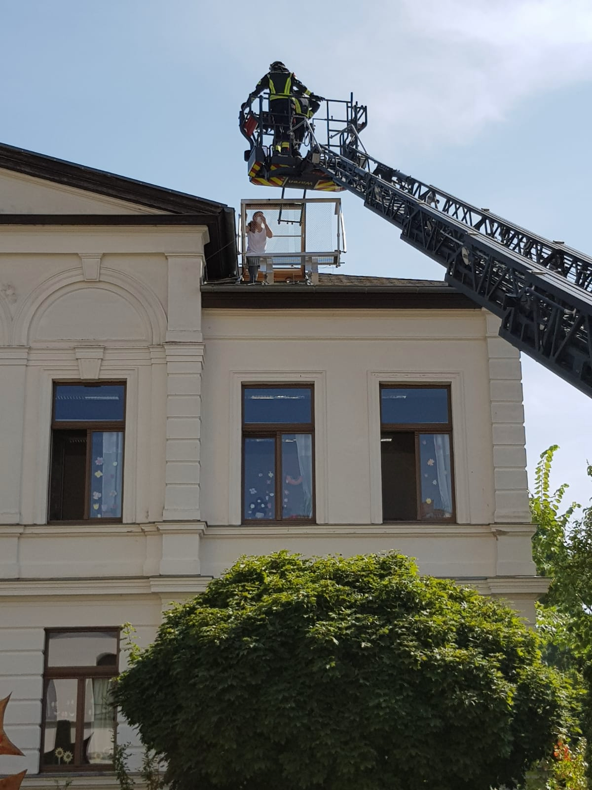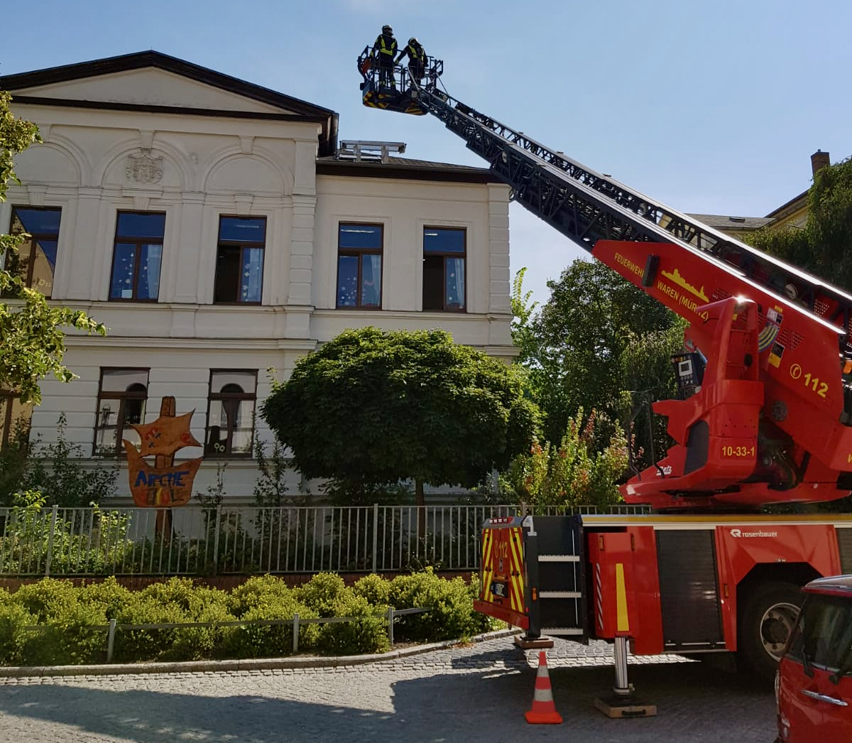 Drehleiter-Einsatz heute Vormittag an der Warener Arche-Schule: Dort war aber zum Glück nichts passiert: Zum Abschluss der Überarbeitung des Brandschutz-Konzeptes der Schule fand eine Evakuierungs-Übung statt.
