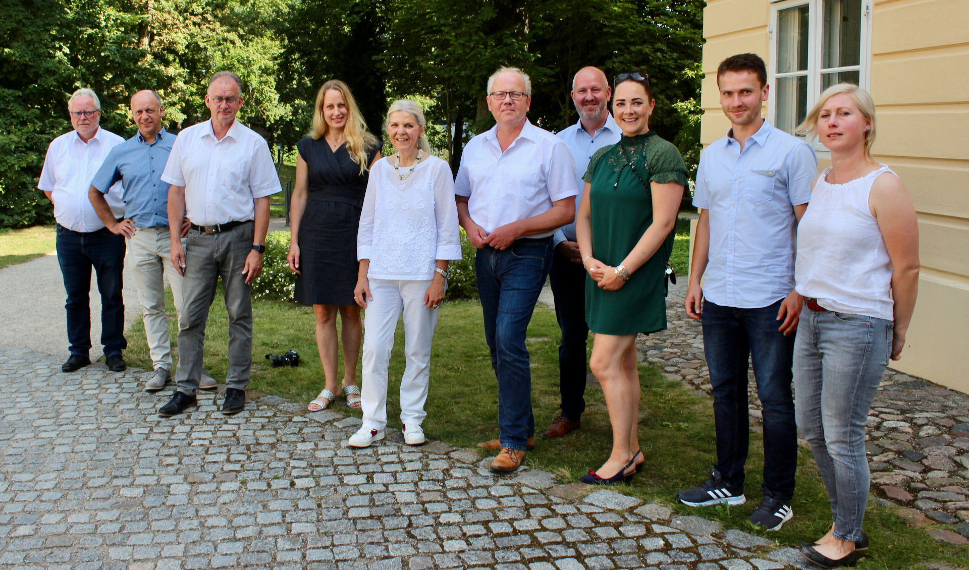 Foto: Die beteiligten Gesprächspartner mit Landrätin Kebschull (4.v.l.) und Landrat Heiko Kärger (3.v.l.) auf der Schlossinsel Mirow