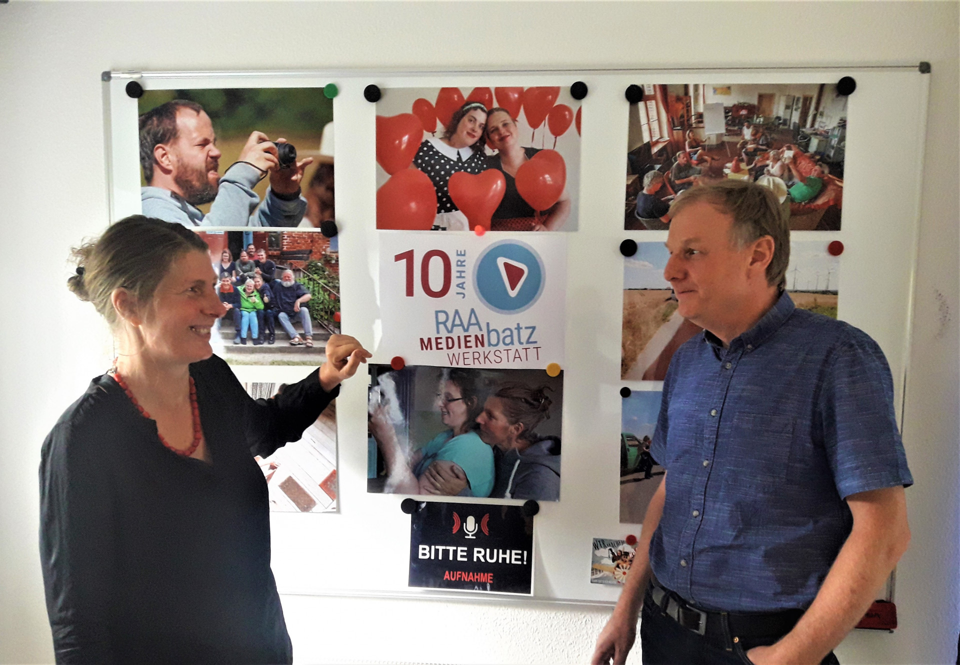 Bild oben: Die Leiterin der Medienwerkstatt, Anja Schmidt, und RAA-Geschäftsführer Christian Utpatel sehen dem Jubiläumstag in Waren mit Vorfreude entgegen.