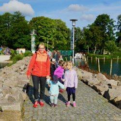 Die Feuerwehr kam am Montag vorbei, da ging es dann auch gleich hoch in die Lüfte. Dienstag gab es eine Bootstour mit der Fontane auf der Müritz, am Mittwoch zogen die Klinker Knirpse gemeinsam mit der Feuerwehr durchs Dorf zum Bauernmarkt. Mit gedichteten Liedern verabschiedeten sich die Hortkinder von ihrer Frau Bethke.