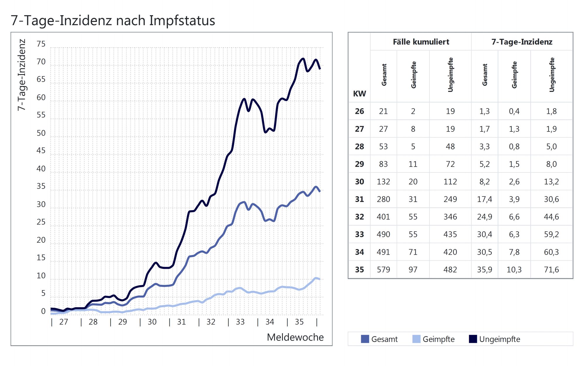 Unter diesem Artikel finden Sie, liebe Leser, nicht nur die bekannte Grafik des Landesamtes für Gesundheit zu den Corona-Fällen, sondern auch eine Grafiken zu den Inzidenzen – unterteilt in Geimpfte und Ungeimpfte.