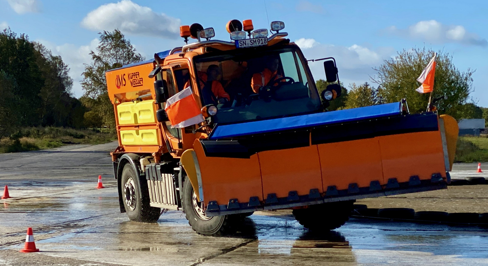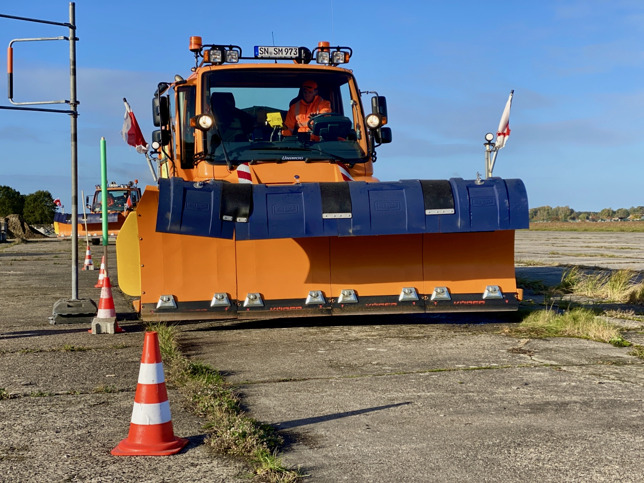 Die 25 Straßenmeistereien der Straßenbauämter Neustrelitz, Schwerin und Stralsund haben die Vorbereitungen für die bevorstehende Winterdienstsaison beinahe abgeschlossen. Neben dem Festlegen der Schichtpläne, der Überprüfung der Einsatzgeräte und der Einlagerung von Streugut gehört auch ein Fahrsicherheitstraining dazu. Die Fahrzeugführer der Streu- und Räumfahrzeuge arbeiten unter besonderen Herausforderungen. Schnee, Eis, Dunkelheit und schlechte Sichtverhältnisse gehören zum Alltag. „Damit wir auch bei diesen widrigen Bedingungen die Straßen und Radwege freihalten können, ist dieses Training ein elementarer Bestandteil unser Vorbereitung“ erläutert Dr. René Firgt, Direktor des Landesamtes für Straßenbau und Verkehr. Und so ein Training wurde jetzt auf dem alten Militärflughafen in Lärz absolviert.