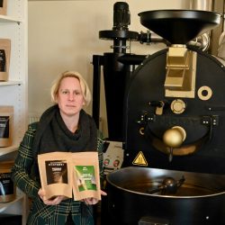 Kaffee-Liebhaber haben in der Müritz-Region seit kurzem einen neuen Anlaufpunkt: Die „Fleesensee Rösterei“ am Marktplatz in Göhren-Lebbin. Dort kann man das Lieblingsgetränk der Deutschen nicht nur in gemütlicher Atmosphäre schlürfen, sondern auch beim Rösten zuschauen und natürlich kaufen. Röstmeisterin Sarah Triphaus hat inzwischen zehn verschiedene Sorten im Angebot und setzt auf fair gehandelten Kaffee, mit dem in den Anbauländern soziale Projekte unterstützt werden. Um die 15 Minuten brauchen fünf Kilo Bohnen in der Röstmaschine, bis sie fertig sind – die besondere Qualität hat sich inzwischen so herumgesprochen, dass Urlauber den Fleesensee-Kaffee regelmäßig +im Online-Shop ordern.