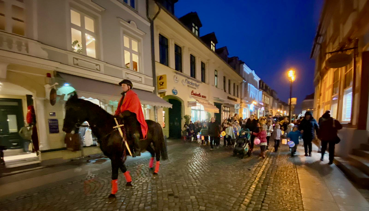 Nicht nur Eröffnung der Karnevalssaison heute, sondern auch St. Martinstag. Der wurde auch in Waren gefeiert – mit einem kleinen Programm auf dem Neuen Markt und einem Laternenumzug durch die Stadt. Vorneweg „Martin“ auf dem Pferd.