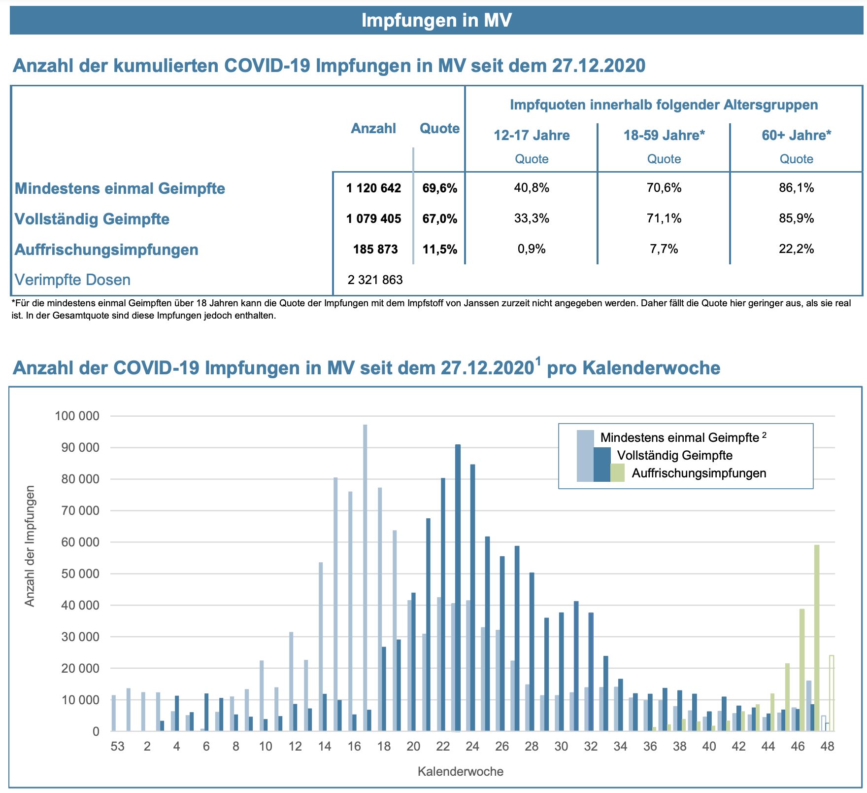 Neben den täglichen Grafiken, auf denen jetzt auch die Inzidenzen der Geimpften und Ungeimpften ausgewiesen sind, veröffentlichen wir heute zudem den aktuellen Impfreport des Landes.
