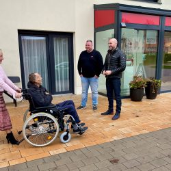 Gestern nun hat’s geklappt. Matthias Krumm und Lars Pohlmann standen mit dem auffälligen Auto vor dem Hospiz, und Bewohner Jörg war zu Tränen gerührt. Er konnte es nicht fassen. Als er dann auch noch im Lamborghini sitzen durfte und Matthias mit im losbrauste, konnte der 65-Jährige für einen Moment seine schlimme Krankheit vergessen. Während der Tour nach Vielist, forderte er Matthias sogar auf, doch mal kräftiger aufs Gaspedal zu drücken. Die Fahrt hat ihm so gut gefallen, dass er gar nicht wieder aussteigen wollte und voller Begeisterung immer wieder den Sitz streichelte. „Das ist so geil. Und Ihr alle auch“, sagte er und ließ sich noch einmal um das ganze Auto herum schieben. „Das ist schon ein ganz schönes Geschoss, aber die größten Geschosse seid Ihr“, freute sich der Hospiz-Gast, und erzählte zugleich, wie dankbar er sei, in der DRK-Einrichtung wohnen zu dürfen. Als ihm Matthias Krumm dann auch noch ein Original-Lamborghini-Basecap auf den Kopf setzte, war der studierte Sozialpädagoge total aus dem Häuschen. Das, so meinte er, nimmt er jetzt nicht mehr ab, auch nicht im Bett.