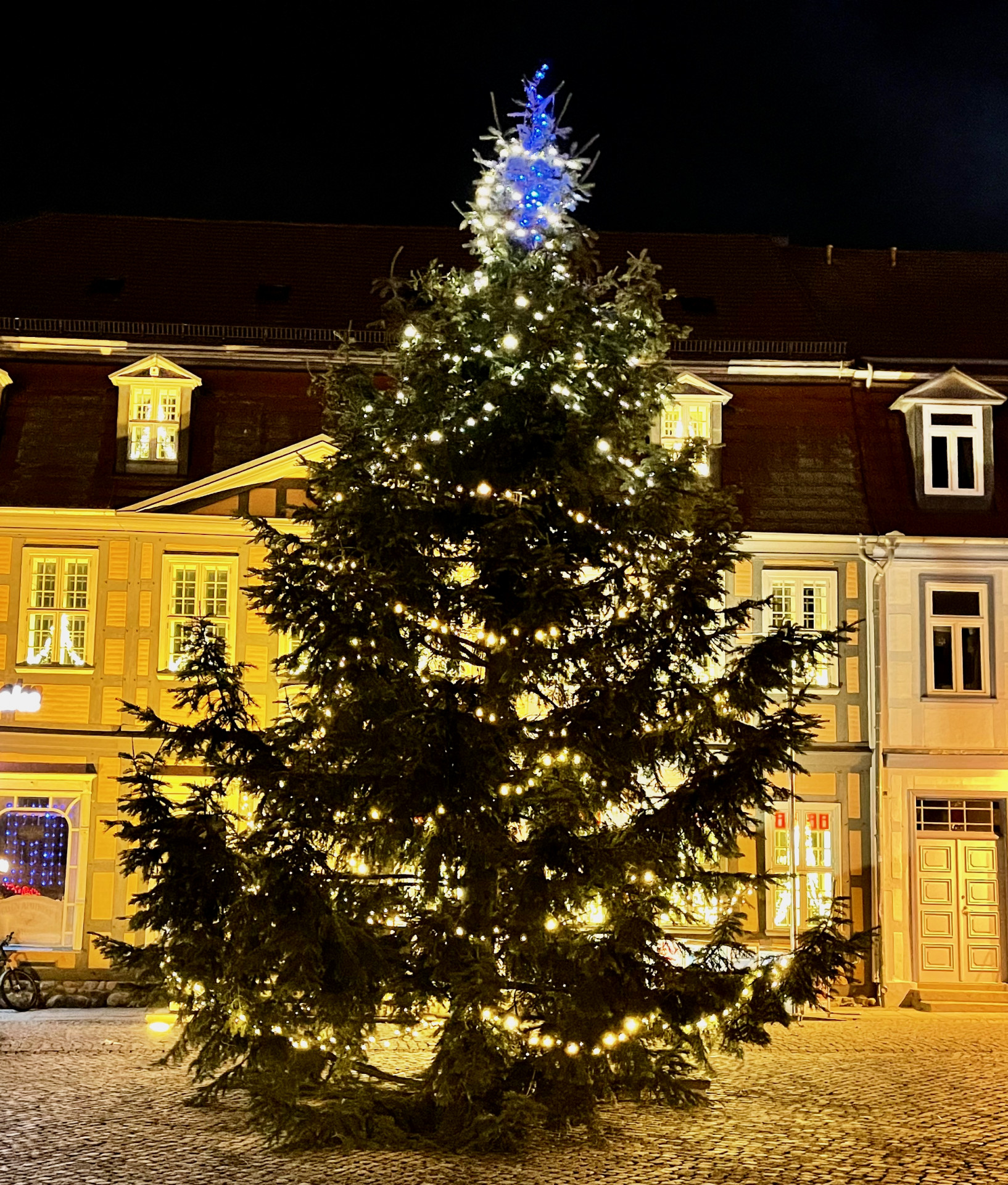 Der einzige weihnachtliche Höhepunkt ist der Baum auf dem Alten Markt. Der auf dem Neuen Markt ist zwar groß, aber wir empfinden ihn als lieblos geschmückt. Wir waren zu Verwandten in Gadebusch im Landkreis Nordwestmecklenburg. Eine kleine Stadt mit nicht einmal 6000 Einwohnern aber einem liebevoll geschmückten Baum. Es geht also, wenn man will.