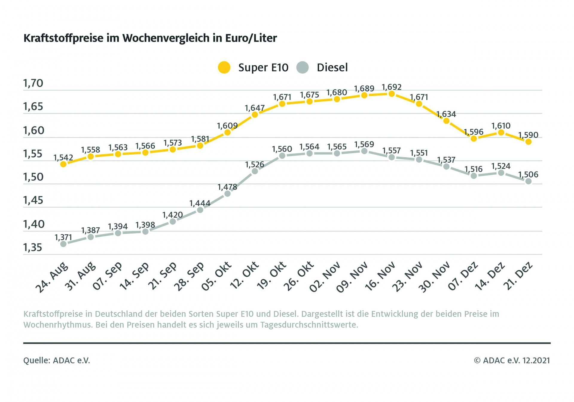 Autofahrer, die über die Feiertage oder die Weihnachtsferien längere Fahrten unternehmen, sollten nach Möglichkeit die Schwankungen der Kraftstoffpreise im Tagesverlauf nutzen und in den Abendstunden tanken. Laut ADAC Auswertungen kosten Benzin und Diesel in aller Regel in den Morgenstunden um 7 Uhr am meisten, abends zwischen 18 und 19 Uhr sowie zwischen 20 und 22 Uhr ist Kraftstoff am günstigsten. Wer dann tankt, kann bis zu sieben Cent je Liter sparen.