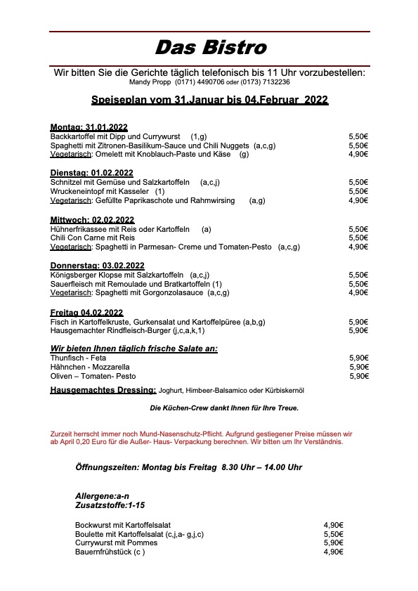 Hier der komplette Speiseplan für diese Woche: