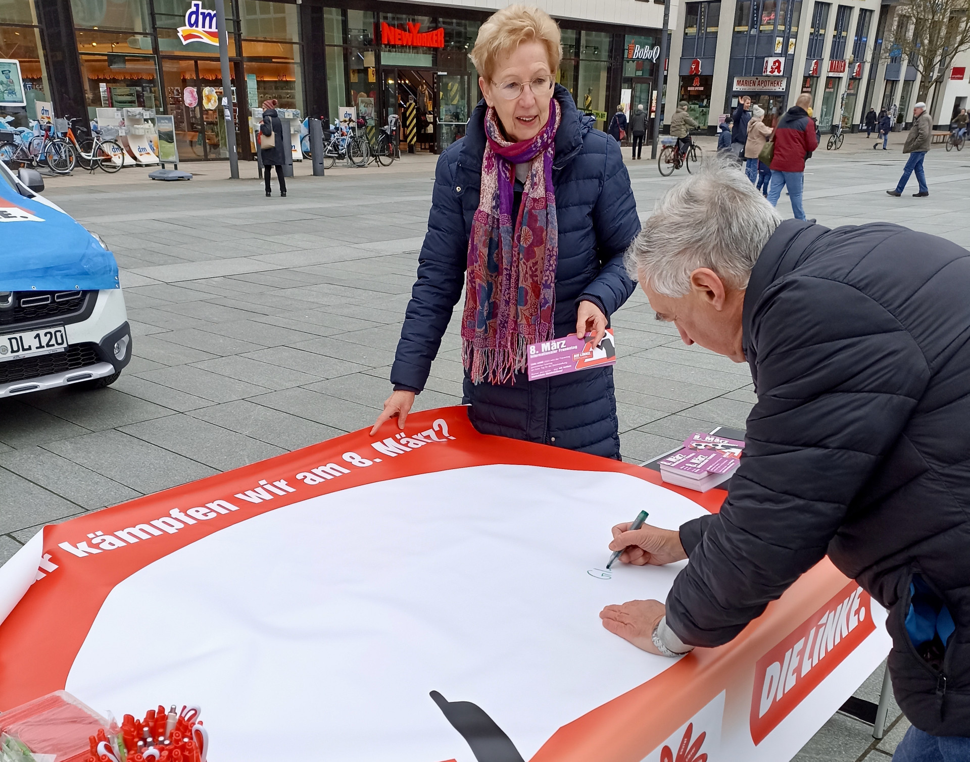 Der Kreisverband Mecklenburgische Seenplatte der Partei sammelt heute von 13 bis 15 Uhr auf dem Warener Neuen Markt gemeinsam mit der Landtagsabgeordneten Elke-Annette Schmidt unter dem Motto: „Wofür kämpfen wir am 8.März?“; Forderungen, Stellungnahmen und Zitate der Bürger, die anschließend im Landtag präsentiert werden. Elke-Annette Schmidt: „Der 8.März soll ab dem kommenden Jahr zum offiziellen Feiertag werden. Aber feiern allein reicht nicht. Wir haben schon viel erreicht, aber auch noch viel zu tun. Dazu will ich mit Ihnen ins Gespräch kommen.“