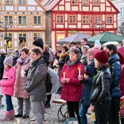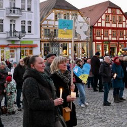 Die SPD-Landtagsabgeordnete Nadine Julitz – normalerweise recht redegewandt – hatte heute Abend sehr große Probleme, zu den Menschen zu sprechen. Vor allem, als sie von den Kindern erzählte, die auf der Flucht sind, verletzt oder sogar getötet wurden, stockte der zweifachen Mama die Stimme. So bedankte sich bei den vielen Helfern und sprach das aus, was sich wohl die meisten Menschen derzeit wünschen: „Hoffentlich ist dieser Krieg bald vorbei.“