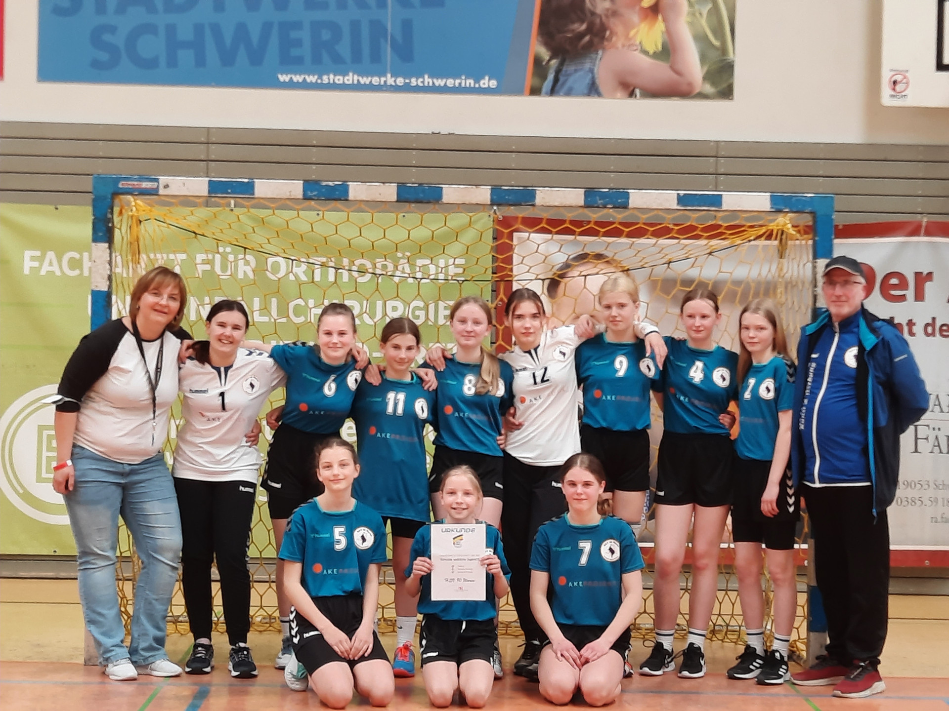 Im anschließenden Turnier traten fünf Mannschaften aus Schwerin, Rostock, Bützow, Stavenhagen und Waren an. Das erste und zweite Spiel gewannen die Mädchen des HSV 90 Waren souverän. Das dritte Spiel verloren sie ganz knapp gegen Rostock.