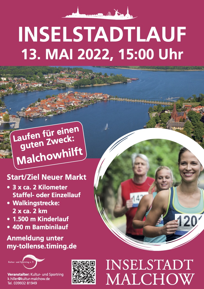 Der Countdown läuft: Nur noch wenige Tage bis zum Inselstadtlauf: Vor elf Jahren veranstaltete ein Malchower den ersten Inselstadtlauf, jetzt geht’s mit dem Kultur- und Sportring e.V. in die vierte Runde. Der Aufruf geht an alle, die mit Spaß und Bewegung einen gemeinsamen Nachmittag für einen guten Zweck erleben möchten.