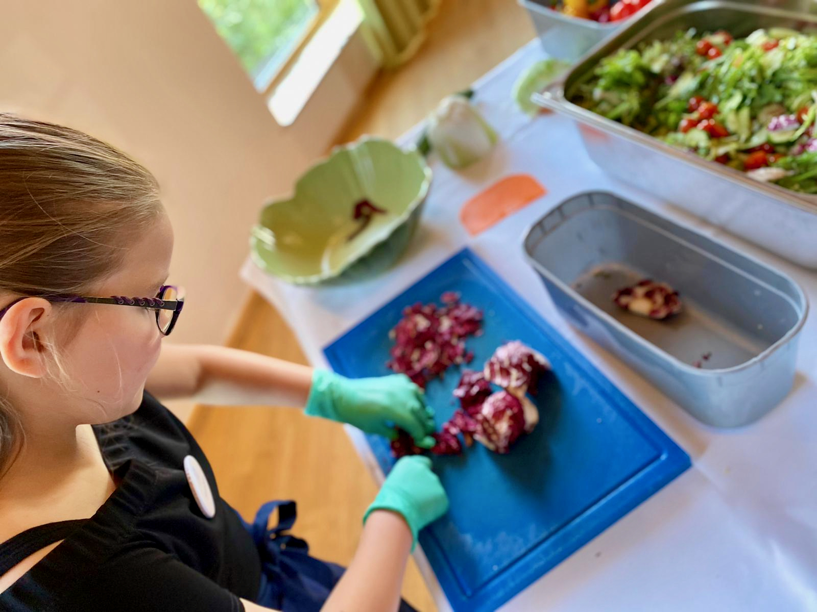 Wie auch in den anderen beteiligten Unternehmen bereiteten die Schüler zusammen mit der Unterstützung der Kochprofis Eric und Jan ein Drei-Gänge-Menü, bestehend aus Salat, Nudeln und Tomatensoße sowie Obstsalat und Eis zu.
