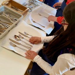 Von den Restaurantfachfrauen Doreen und Sabine lernten die Viertklässler unter anderem, wie ein Tisch nicht nur schön, sondern auch fachlich korrekt und knigge-konform eingedeckt wird.