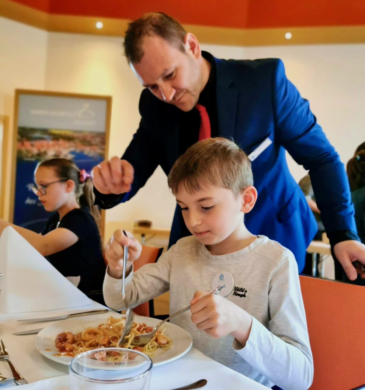 Zunächst erfuhren die Kinder aus erster Hand, nämlich von Direktor Michael Elfert, allerlei Interessantes rund um das Thema gutes Benehmen während einer Präsentation. Weiter ging es dann ganz praktisch.