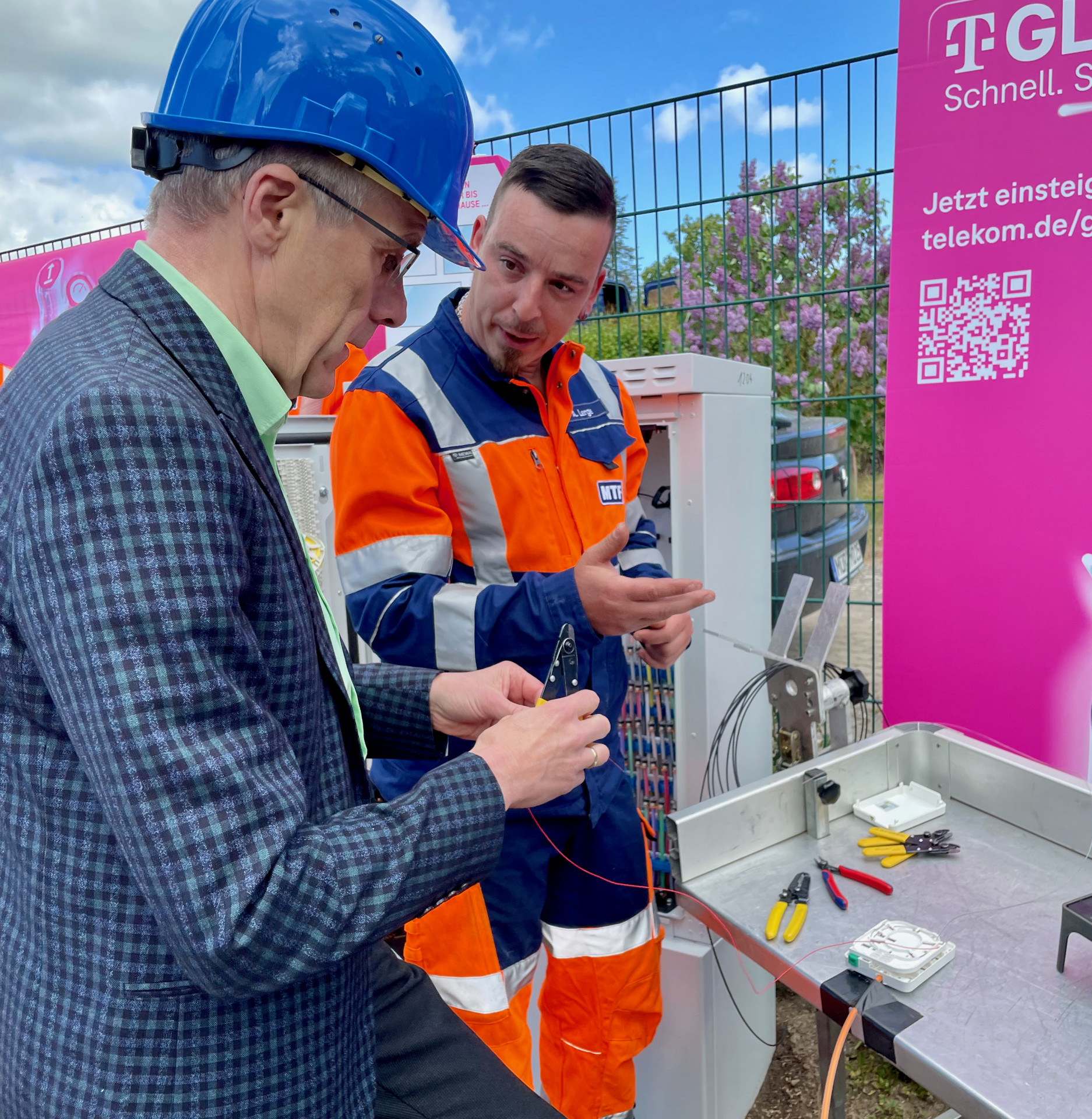 Von dem gestern gestarteten Glasfaser-Ausbau profitieren in den kommenden Wochen und Monaten exakt 2536 Haushalte – die meisten von ihnen in Neubaublöcken der Weststadt. Die Telekom baut auf eigene Rechnung, also ohne Förderung, und verlegt mehr als 60 Kilometer Glasfaser zu acht Verteilern. Auch bis direkt in die Häuser und Wohnungen hinein. Wer sich während der Ausbauphase für den Gasfaser-Anschluss entscheidet, muss dafür nichts zahlen, die Monteure ziehen die Kabel auf Wunsch bis in die Eigenheime oder bis in jede einzelne Wohnung. „Dafür brauchen wir die Genehmigung der jeweiligen Eigentümer. Schließlich betreten wir Privatgrund. Den Anstoß können auch Mieter geben, wenn sie sich bei uns melden“, so Torsten Freiberg als Regionalmanager der Telekom. Wer sich nicht jetzt entscheidet, kann sich auch später anschließen lassen, muss dann aber selbst bezahlen.