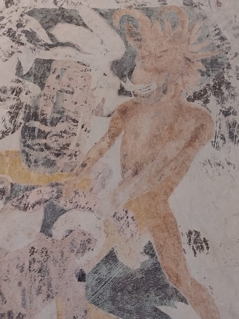 Damals wie heute ist an der Nordwand der Kirche ein Bildfragment zu sehen. Eigentlich ist praktisch nichts mehr darauf zu erkennen. Aus denkmalrechtlichen Gründen war es nicht möglich, das Bild am Originalplatz zu rekonstruieren. Das lag vor allem daran, dass nicht mit letzter Sicherheit zu ermitteln ist, wie es mal ausgesehen hat und man nicht riskieren wollte, ein Originalwerk mit einer zeitgenössischen Interpretation zu zerstören.