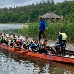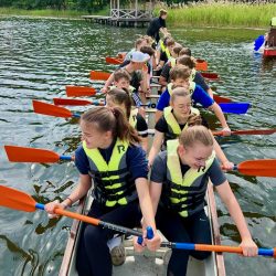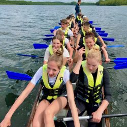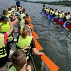 Training statt Unterricht, Paddel statt Kugelschreiber: 40 Mädchen und Jungen der 7. und 8. sowie 9. und 10. Klassen des Richard-Wossidlo-Gymnasiums Waren haben in der vergangenen Woche Kilometer geschrubbt. Sowohl an Land, aber hauptsächlich auf dem Wasser. Sie trainieren für verschiedene Drachenboot-Wettkämpfe und waren dafür drei Tage in Neu Sammit bei Krakow am See im Trainingslager. Zum einen wollen sie wieder in Neubrandenburg bei „Sport statt Gewalt“ mitmachen, zum anderen haben mindestens zehn von ihnen aber ein ganz großes Ziel: Die Deutschen Meisterschaften im Drachenboot im September in München. Dafür können sich sogar noch interessierte Sportler bewerben. Unterstützt wird das Training seit Jahren vom ESV Waren, Trainer Ingo Warnke hat die Jugendlichen auch in Neu Sammit wieder unter seine Fittiche genommen.