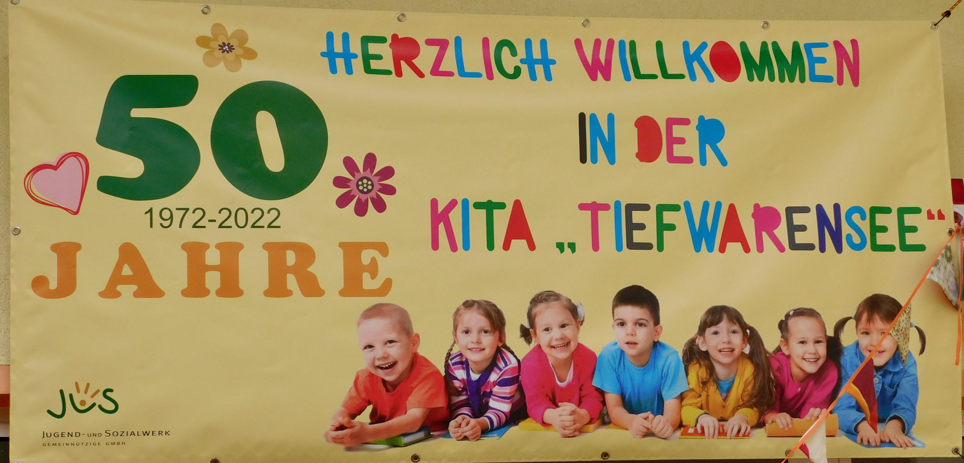 Danach wurde es historisch. Kita-Chefin Nicole Lönneker nahm die Gäste auf eine kleine Zeitreise mit. Sie erfuhren, dass die beliebte Kita in toller Lage am Tiefwarensee im Jahr 1972 vorerst als reine Kinderkrippe eröffnet wurde – mit sage und schreibe 32 Plätzen. Ein Segen für die damaligen Mitarbeiter des Krankenhauses, die diese Plätze ausgiebig nutzten. Erst im Jahr 1990 wurde aus der Krippe eine Kindertagesstätte mit zwei Kita-Gruppen und einer Krippen-Gruppe. Später ist das alte Gebäude nach zähen Diskussionen umfassend modernisiert und erweitert worden. Seit 2004 gehört die Einrichtung zum Träger „Jugend- und Sozialwerk“.