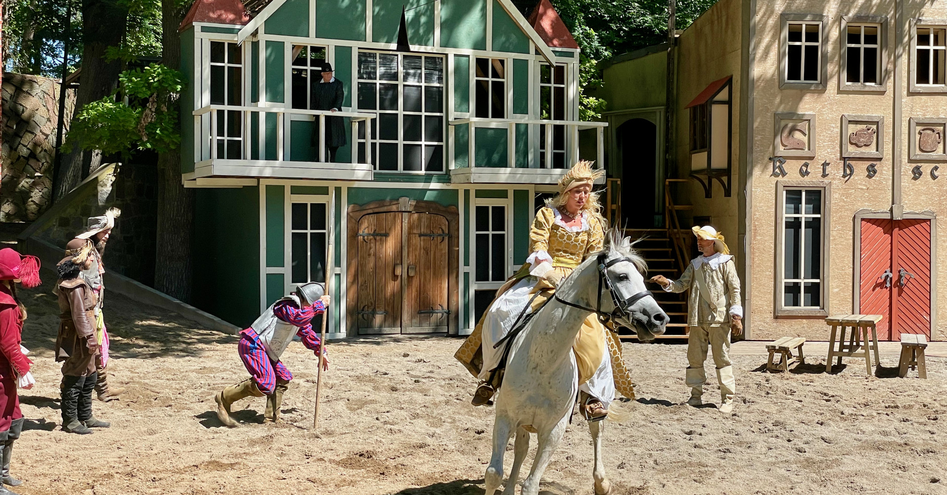 Zwei Jahre nicht gesehen und doch gleich wieder erkannt: Die Müritz-Saga lockt ab dem 2. Juli wieder auf die idyllisch gelegene Freilichtbühne, heute Vormittag hat Regisseur Nils Düwell einige Einblicke gewährt und das Schauspieler-Team für die kommenden Saison vorgestellt. Und das war wirklich ein Wiedersehen mit „alten Bekannten“. So sind die Publikumslieblinge Tobias Hübsch – er spielt den Stadtknecht Balthasar – und Hardy Halama wieder mit dabei. Hardy hat während des Stücks „Des Teufels Schergen“ richtig Stress, denn er muss sich gleich mehrfach umziehen. Der beliebte Saga-Schauspieler ist Barde, Goldschmied, Scherge, Ratsherr und Musketier. Bereits zum elften Mal mit von der Partie: Rocco Hauff, der in zwei Rollen zu sehen ist.