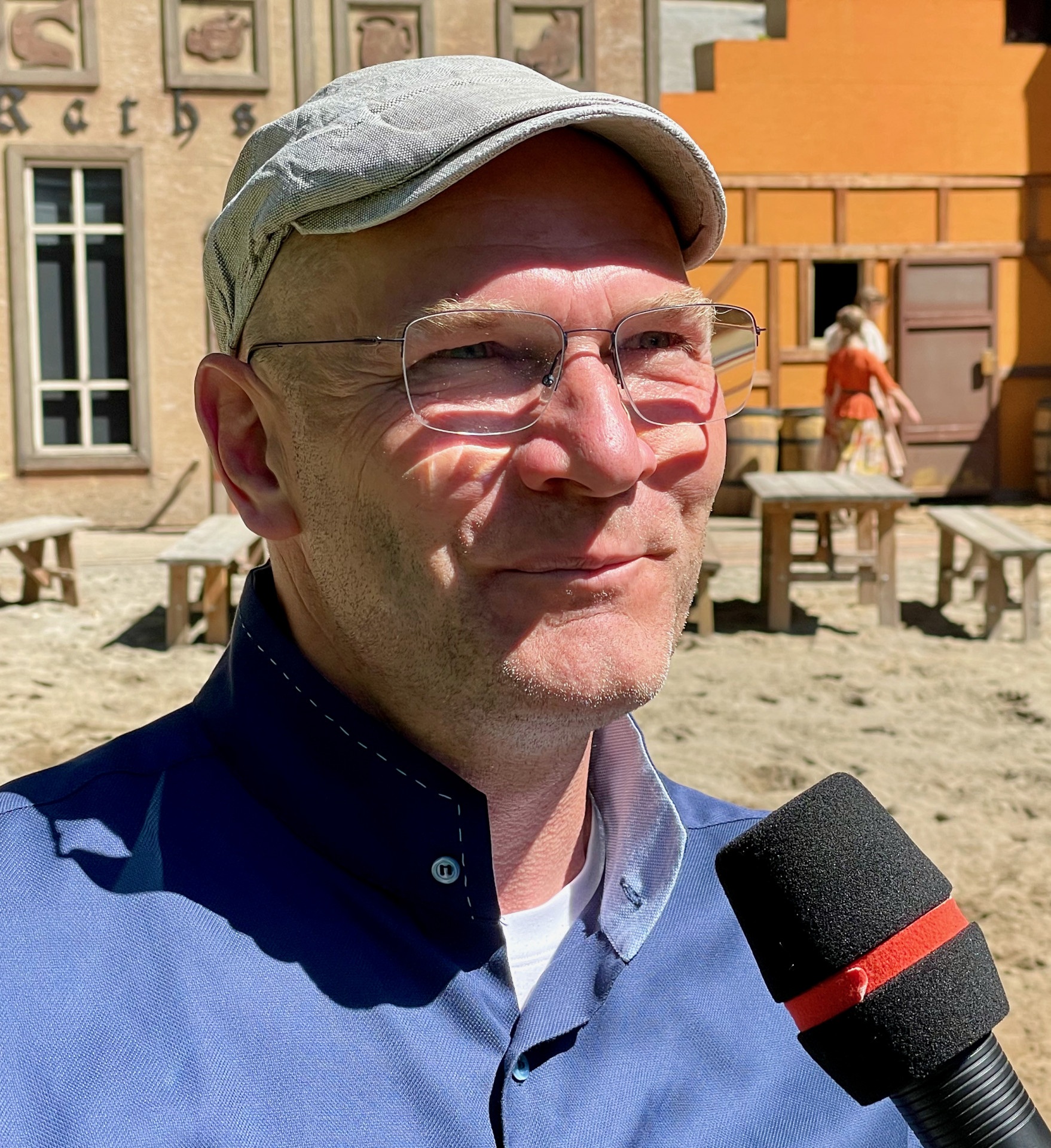 Zwei Jahre nicht gesehen und doch gleich wieder erkannt: Die Müritz-Saga lockt ab dem 2. Juli wieder auf die idyllisch gelegene Freilichtbühne, heute Vormittag hat Regisseur Nils Düwell einige Einblicke gewährt und das Schauspieler-Team für die kommenden Saison vorgestellt. Und das war wirklich ein Wiedersehen mit „alten Bekannten“. So sind die Publikumslieblinge Tobias Hübsch – er spielt den Stadtknecht Balthasar – und Hardy Halama wieder mit dabei. Hardy hat während des Stücks „Des Teufels Schergen“ richtig Stress, denn er muss sich gleich mehrfach umziehen. Der beliebte Saga-Schauspieler ist Barde, Goldschmied, Scherge, Ratsherr und Musketier. Bereits zum elften Mal mit von der Partie: Rocco Hauff, der in zwei Rollen zu sehen ist.